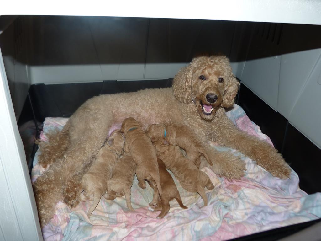 Unsere Baghira hat am 5.03.2019 6 Großpüdelchen zur Welt gebracht. 2 Mädels und 4 Jungs haben das Licht der Welt erblickt, Alle samt Mamma Baghira sind wohlauf